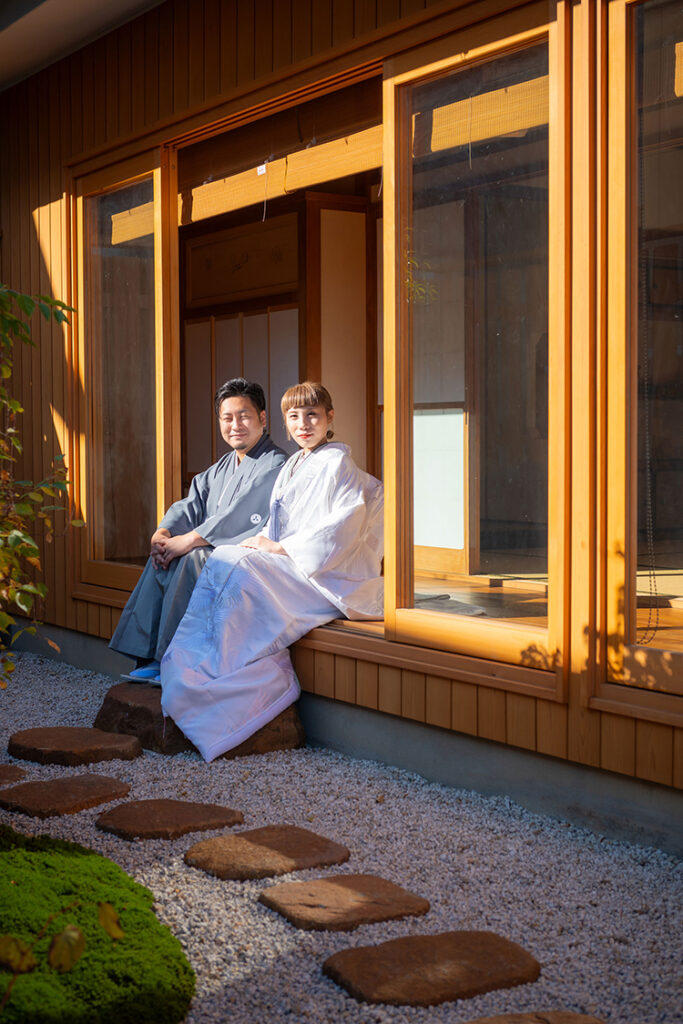 温かみある暖簾が白無垢を引き立たせます。 日本家屋ならではの風情ある玄関。 晴れの日は、日本庭園での撮影も可能です。 温かみある暖簾が白無垢を引き立たせます。 日本家屋ならではの風情ある玄関。 ...